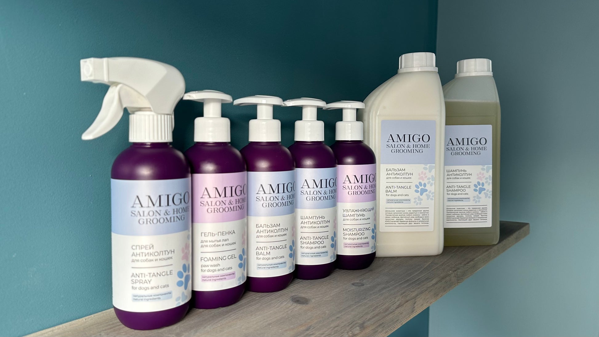 AMIGO - produse profesionale pentru animale de companie. Conține ingrediente naturale pentru îngrijirea blândă a blanei și a labutelor. Produsele mărcii sunt destinate pentru uz casnic, dar și pentru saloanele de îngrijire a animalelor de companie . Potrivit pentru caini si pisici de toate rasele, dar si pentru rozatoare. Linia de produse a fost dezvoltată împreună cu profesioniști din domeniul îngrijirii animalelor, conține formule naturale și un nivel de pH echilibrat.